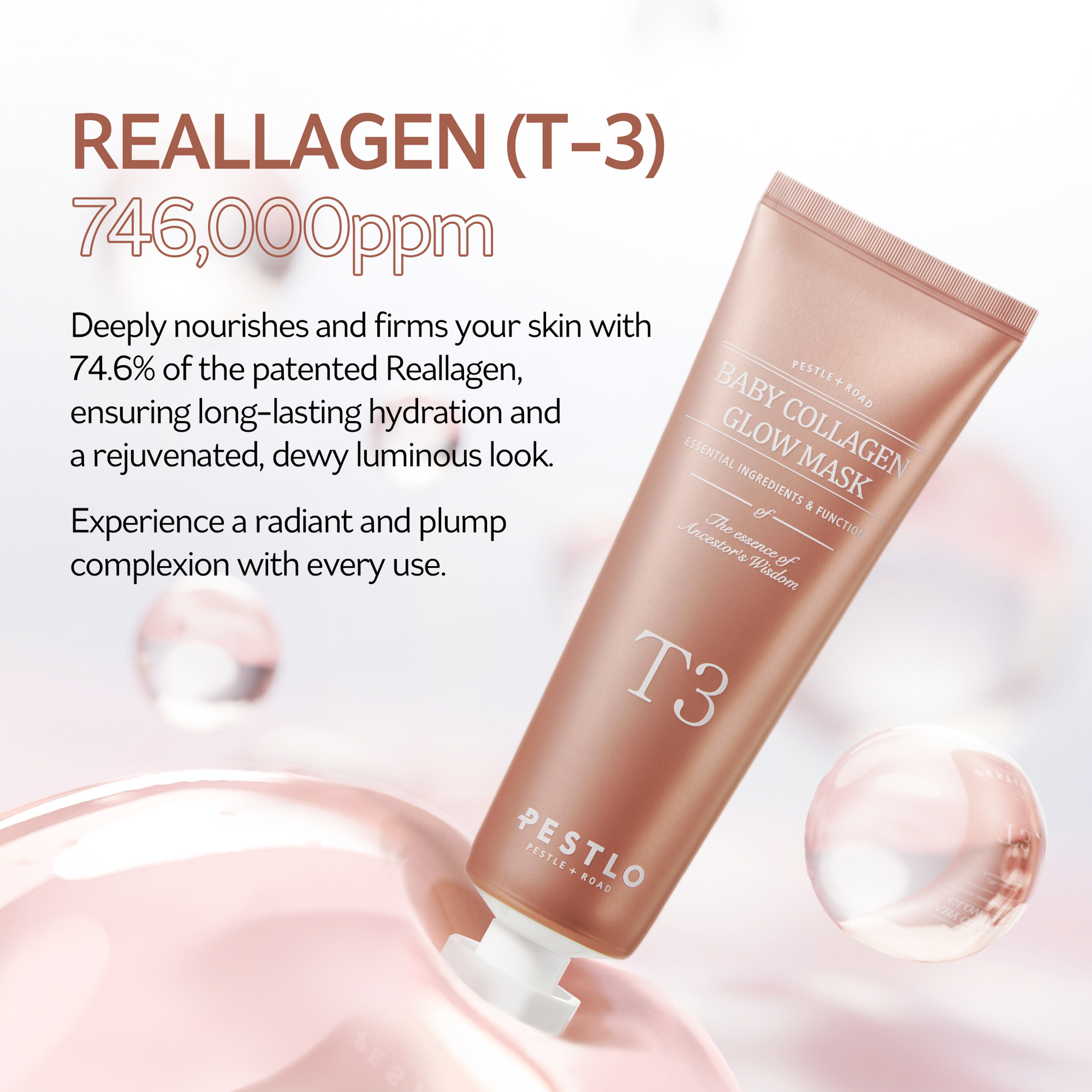 This extraordinary peel-off mask is super-charged with T3 (Type 3) Vegan Collagen (Reallagen), a breakthrough ingredient engineered to mimic the structure of youthful, "baby" collagen. Why is that important? Because it goes straight to work to dramatically improve elasticity, tighten pores, and redefine your facial contours.