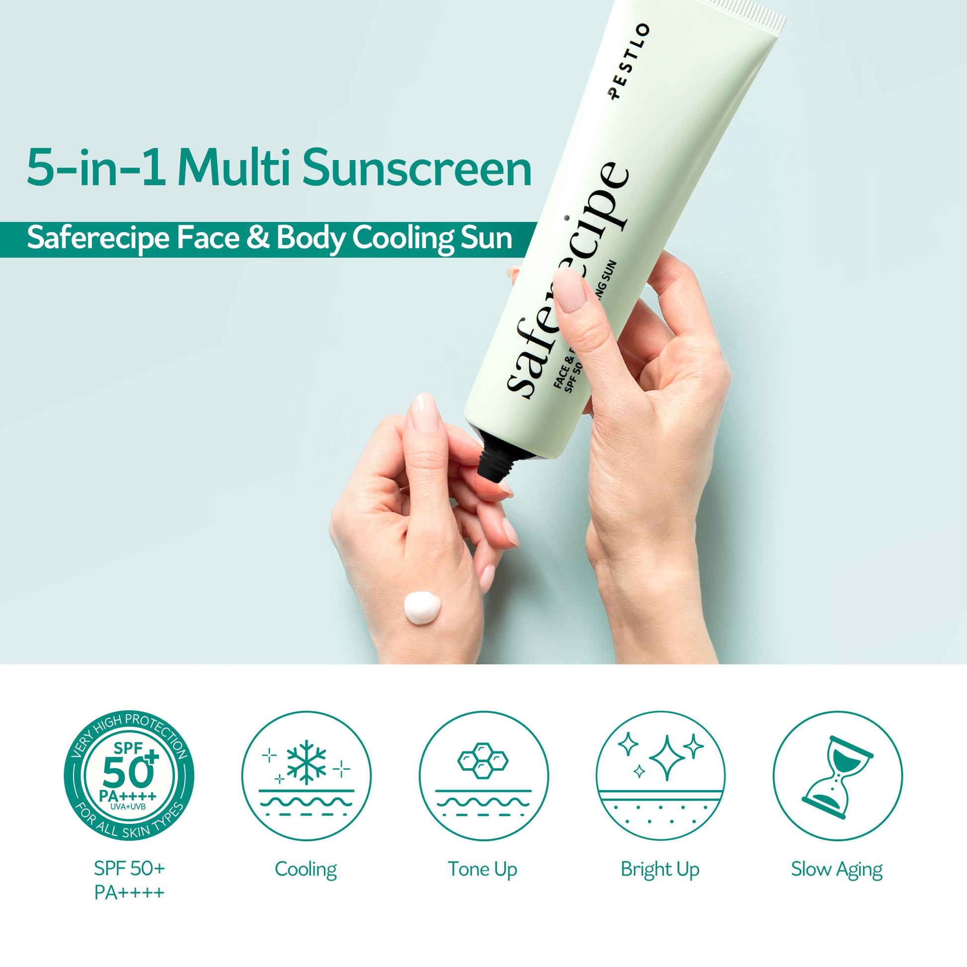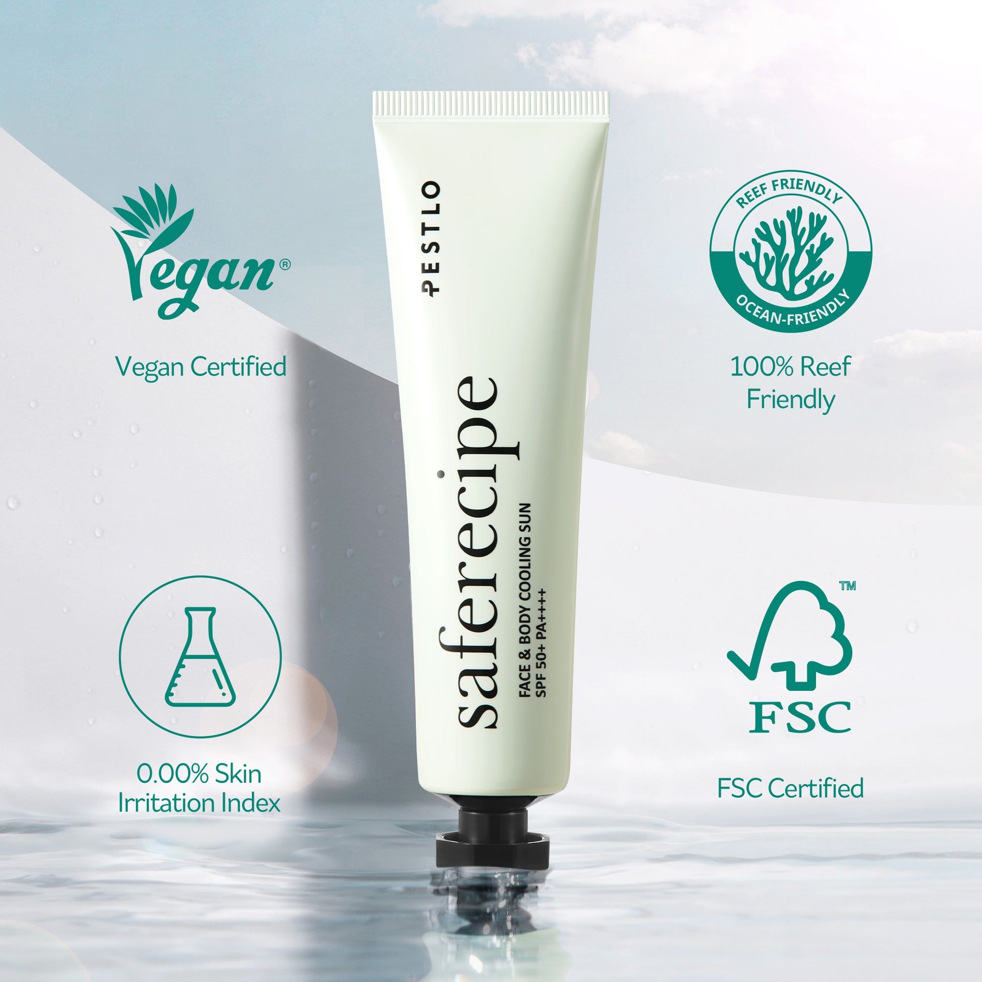 Meet the PESTLO Saferecipe Face & Body Cooling Sun Mini, your essential travel-sized sunscreen offering Refreshing SPF for Head to Toe Protection. Perfect for tossing into your bag, this fast-absorbing formula provides reliable sun defense and a unique cooling sensation.