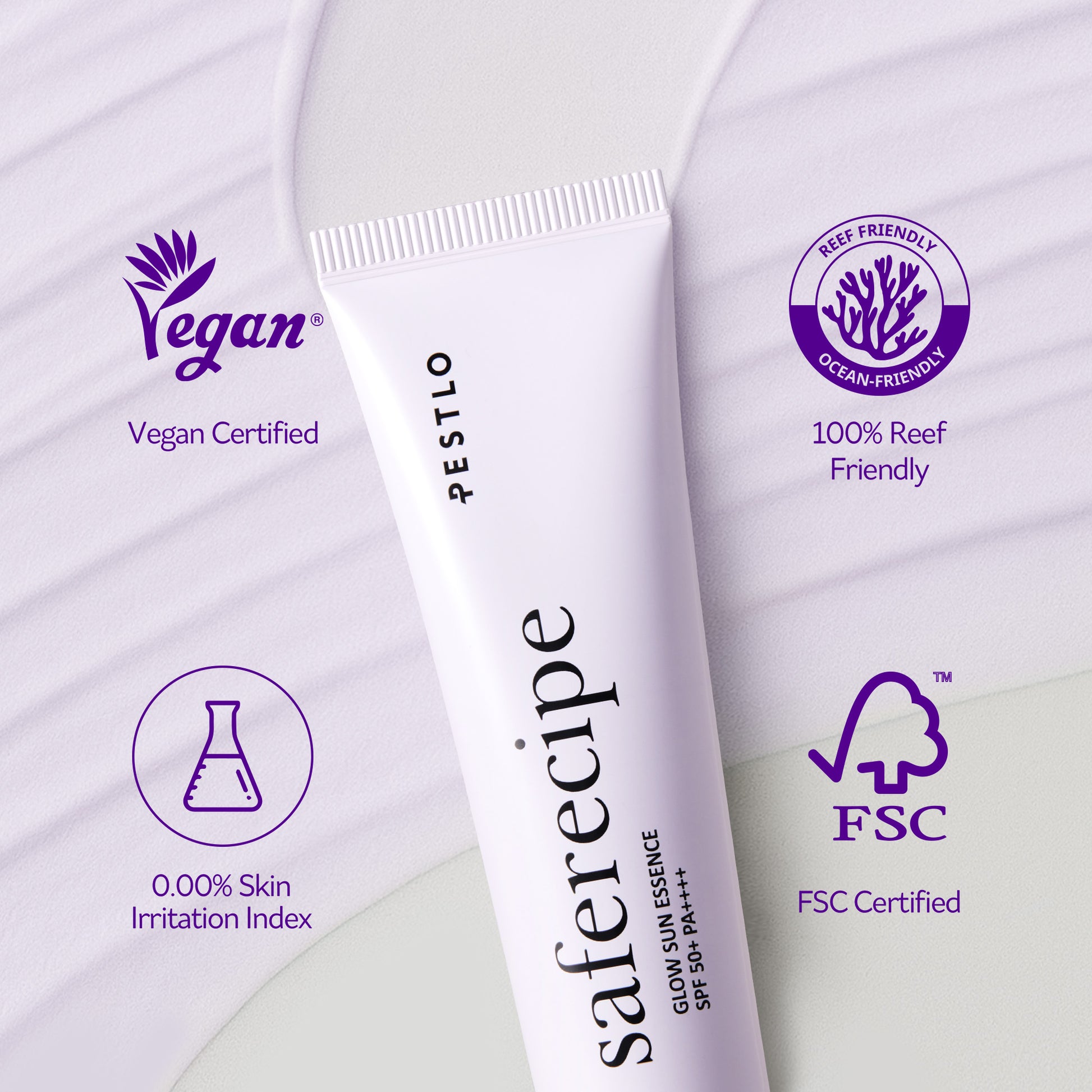 The PESTLO Saferecipe Glow Sun Essence is a Hydrating Sunscreen with a Dewy Finish, offering lightweight, high-protection sun care that doubles as a glow-boosting essence. Perfect for daily use, this formula provides robust sun defense while keeping your skin looking radiant and hydrated.