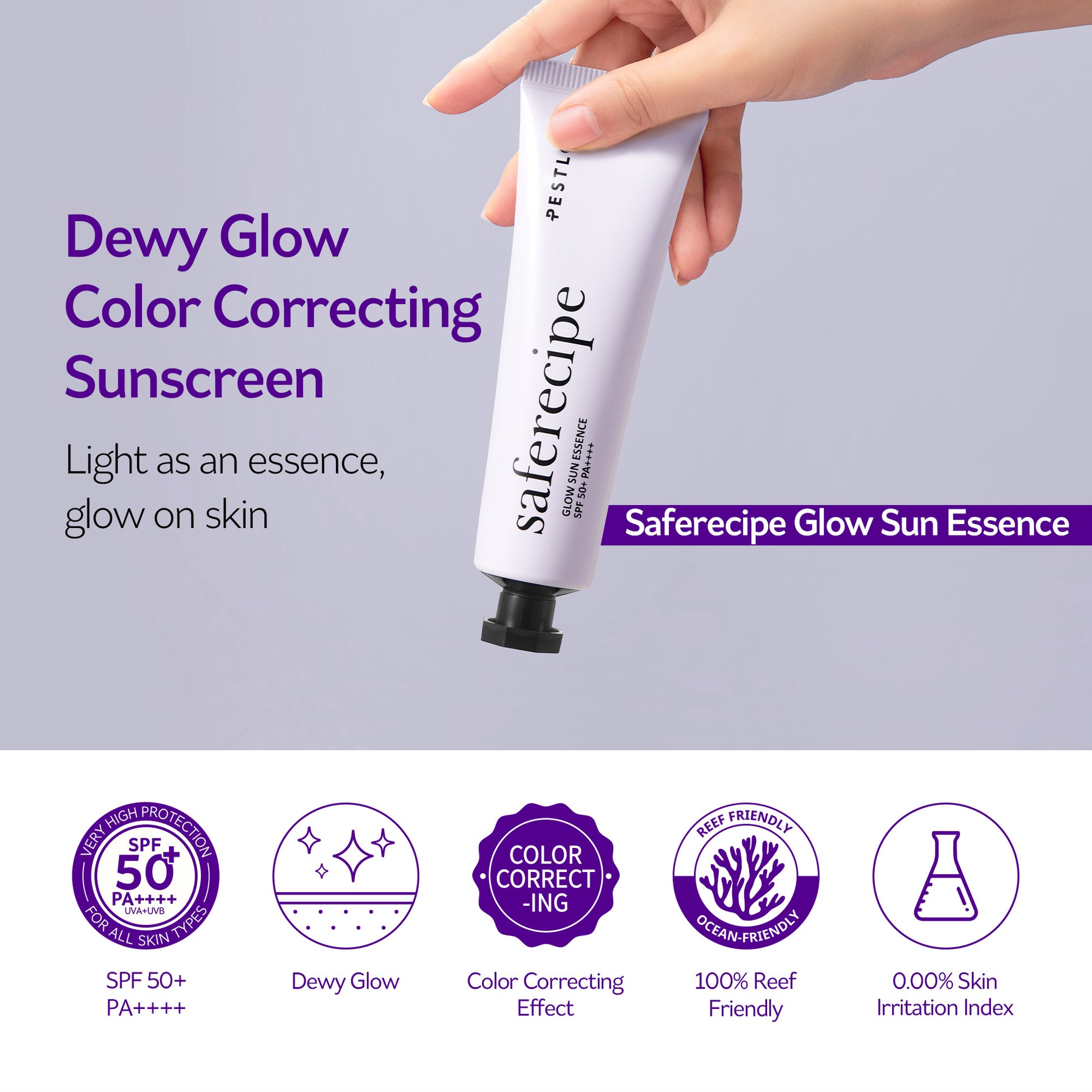 Discover the miniature version of the PESTLO Saferecipe Glow Sun Essence, a Hydrating Sunscreen with a Dewy Finish that's perfect for trial or travel. This lightweight, high-protection SPF50+ PA++++ essence is free of irritating ingredients, giving you robust sun protection with a beautiful glow.