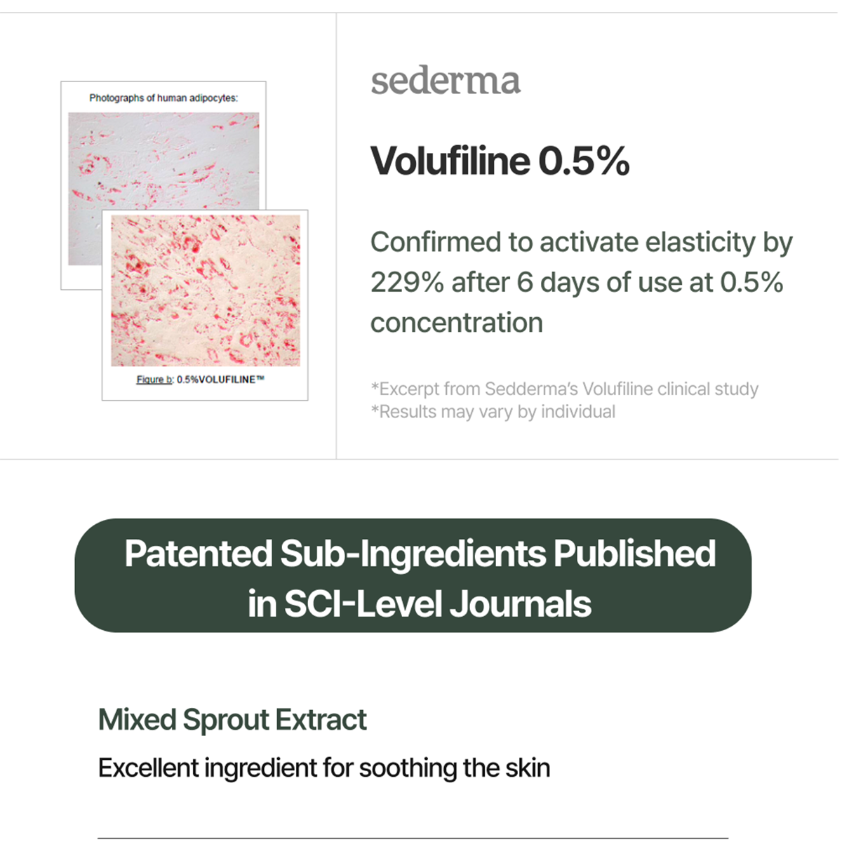 Volumizing & Lifting: Features a high concentration of Volufiline and Jimo Root Extract 100,000 ppm, which target sagging areas to enhance density and provide a visible lifting effect, improving skin elasticity by over 103% in 4 weeks