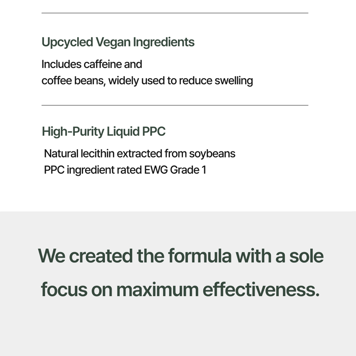 Firming Complex: Caffeine and Coffee Bean Extract work synergistically to reduce puffiness and bulkiness, contributing to an overall slimmer, more toned appearance